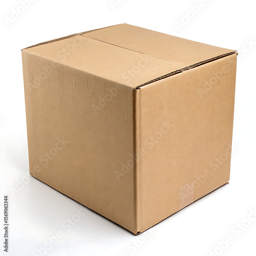 Shipping Packaging Isolated Cardboard Box on White Background - Stock Photo