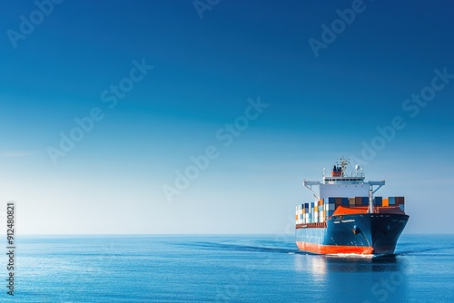 Shipping vessel at sea with a clear blue sky