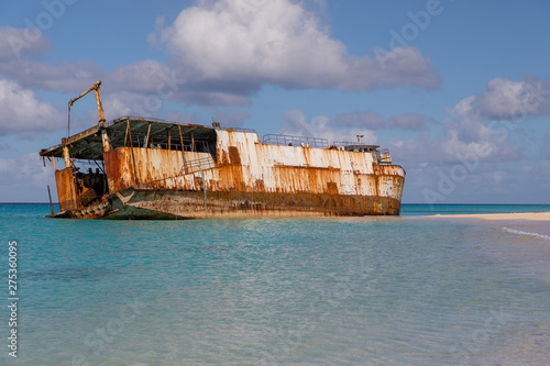 Shipwreck on shoreline in Caribbean sea