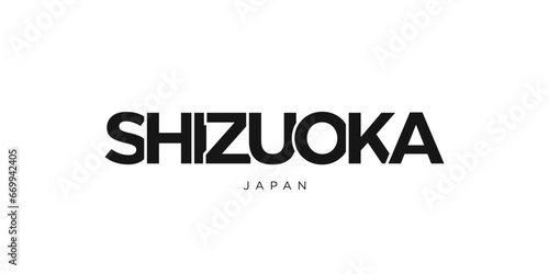Shizuoka in the Japan emblem. The design features a geometric style, vector illustration with bold typography in a modern font. The graphic slogan lettering.