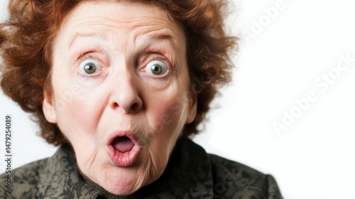 Shocked surprised elderly woman isolated on a white background with copy space, Caucasian