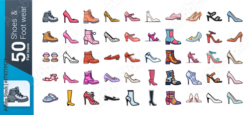 Shoes and Footwear Icon Set, Set of footwear and Shoes, , Flat Icons Set, Shoes Icons Collection