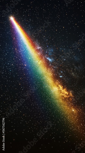 Shooting rainbow star across galaxy cosmic event digital art night sky perspective celestial wonder