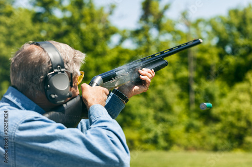 Shooting: Smoke And Cartridge Expelled From Shotgun While Shooting