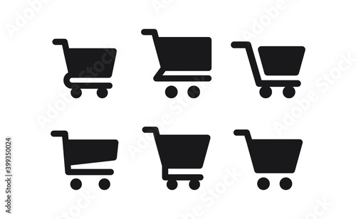 Shop cart icons collection. Supermarket trolley. E-commerce symbol. Online shopping.