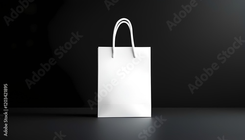 Shopping bag display studio product photography minimalist environment front view brand concept for marketing strategy