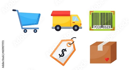 Shopping Cart Barcode Price Tag Delivery Box Concept Ecommerce Online Shopping