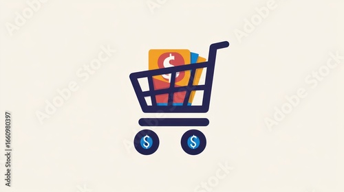Shopping cart filled with money, online purchases, digital payment, e-commerce
