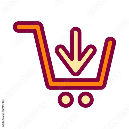 Shopping cart icon in flat style. Supermarket trolley symbol. Online commerce, ecommerce selling, purchasing sign. Retail concept.