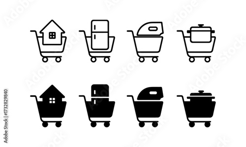 Shopping cart icons with household appliance symbols