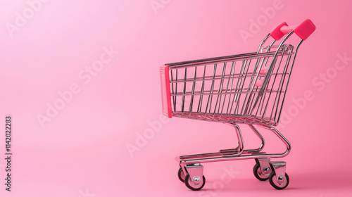 Shopping Cart in Bright Pink Background, Minimalist Composition, Perfect for Retail, E-commerce, and Marketing Concepts, Product Display, Modern Vibe