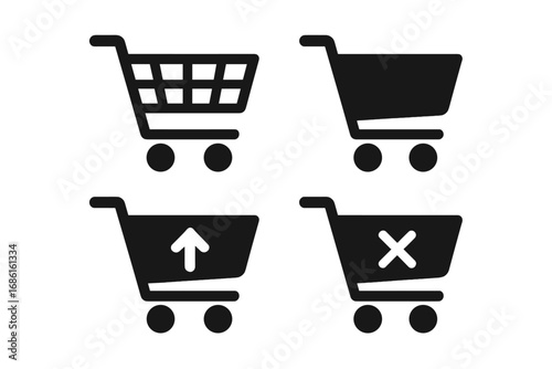 Shopping Cart Silhouette Icon Set, Ecommerce Purchase and Buy Symbols, Vector Cartoon Illustration Collection, Transparent Background, Online Shopping and Retail Icons