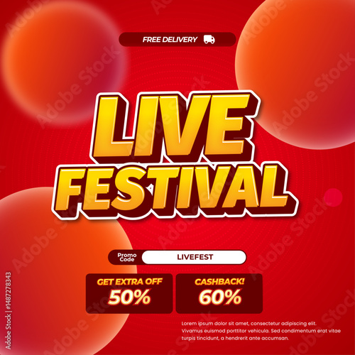 Shopping Live Festival day Sale discount deals Dynamic red gradient Editable text effect Fluid Promotion banner template