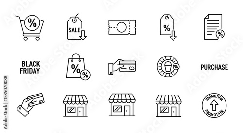 Shopping Vector Icon Set | Cart, sale, ticket, discount, file, friday, black friday, promotion, purchase, payment, store icons