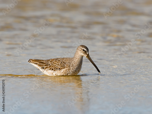 Short-billed Dowitcher Foraging on the Pond