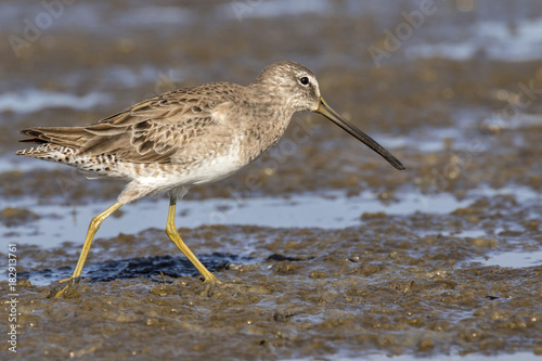 Short-billed dowitcher (Limnodromus griseus) walking in the tidal marsh, Galveston, Texas, USA.