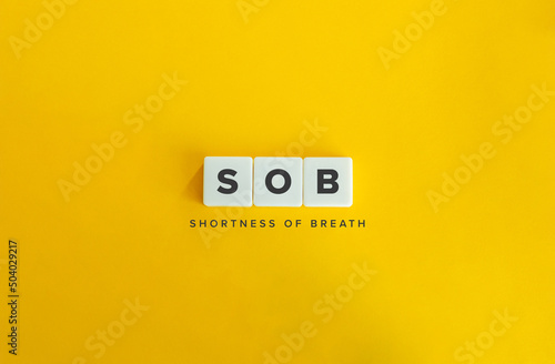 Shortness of Breath (SOB) or Dyspnea Banner. Letter Tiles on Yellow Background. Minimal Aesthetics.