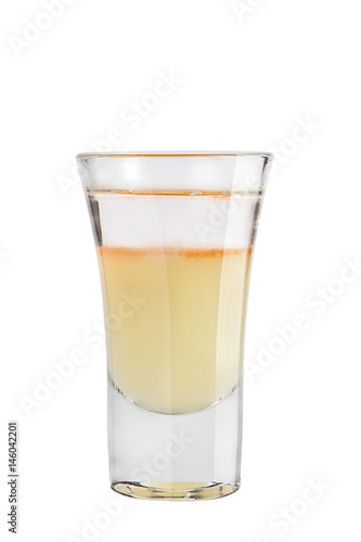 Shot. Alcoholic drink on a white background