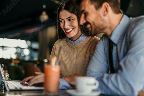 Shot of a young man and woman having a meeting in a cafe