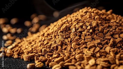 Shot of Detailed Instant Coffee Granules on Clean Black Background