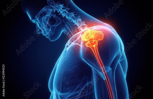 Shoulder Joint Anatomy Illustration with Rotator Cuff Injury and Pain in Human Body