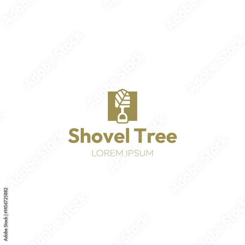 Shovel tree logo. gardening logo concept shovel and nature tree.