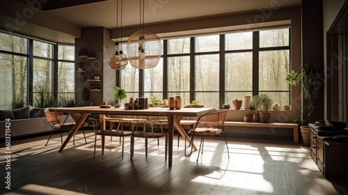 show flat interior design modern nature contemporary dining area daylight minimal decoration style home design concept, image ai generate