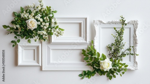 Showcase fresh garden roses in minimalist white ornate frame collection studio setting floral art display