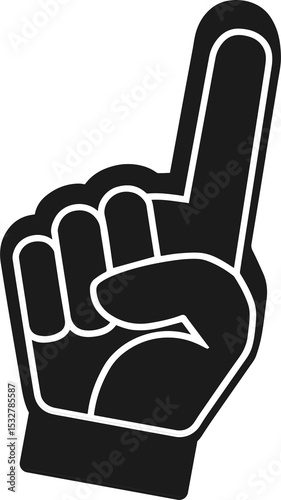 Showing stylized black foam hand pointing upward, flat design white outline, transparent background