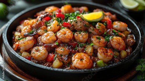 Shrimp and Sausage Skillet with Potatoes and Peppers