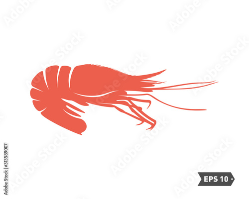 Shrimp logo design Vector. Isolated shrimp on white background. Prawns. Vector illustration.