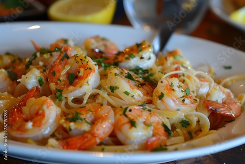 Shrimp scampi with butter, garlic and white wine on a plate