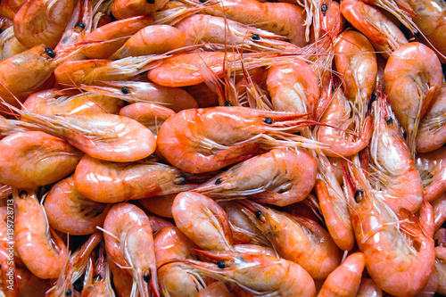 Shrimps background. Fish market. Bergen. Norway.