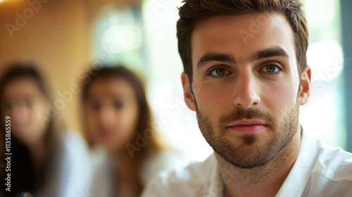 Shy leader speaking softly during a team meeting, showcasing their leadership style that encourages collaboration