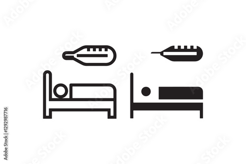 Sick person in bed with thermometer icon Vector