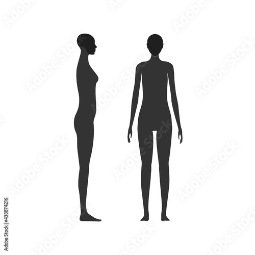 Side and front view silhouette of a female with a highlighted skull and chin area.
