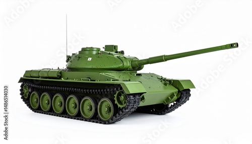 Side View Mockup of a Military Tank in Dark Green on White Background