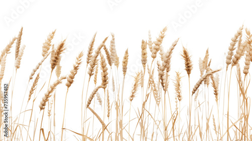 side view of a field of dry mature autumn spikelets of wheat, isolated on transparent background