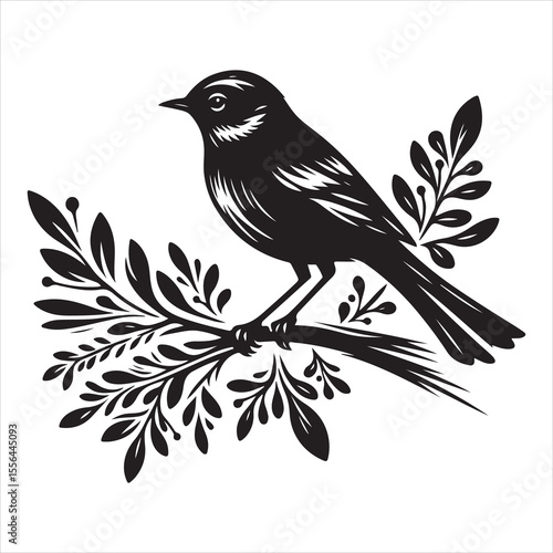 Side view of a perched bird vector silhouette on a branch, black colour vactor