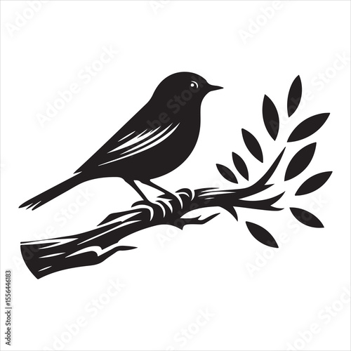 Side view of a perched bird vector silhouette on a branch, black colour vactor