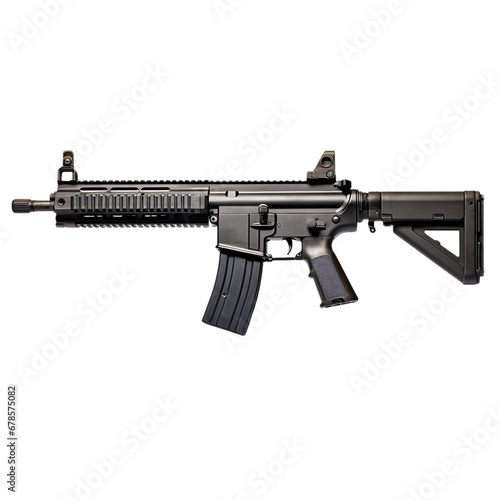 Side view of assault rifle isolated on a white transparent background
