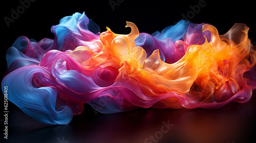 Side view of colorful smoke flowing on dark background. Wave background concept