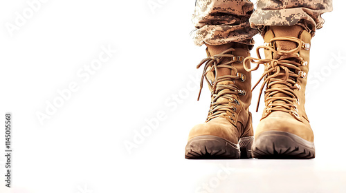side view of soldier boots with laces, isolated on white background