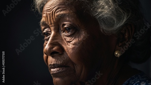 Side-Lit Portrait of a Sad-Eyed Elderly Black Woman