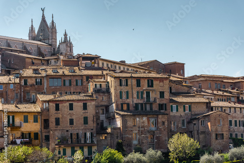 Siena, Italy, 17 April 2022: Beautiful cityscape of the medieval historic center