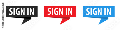Sign In - Origami Speech Bubble. Vector banner. Label set