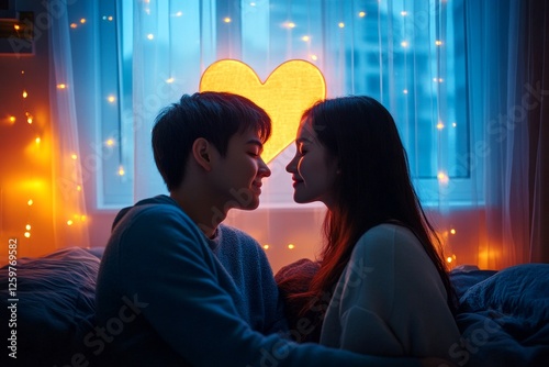 Sign of love and affection. Valentine's day, lovers couple: impressive striking image of loving asian adult lovers. Commercial promotion creative. Honeymoon vibes. Soulmates. Sentimental lov.