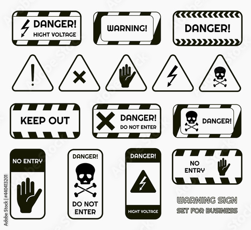 Signs warning of the danger - fire, high voltage, toxic, temperature. Caution Warning Sign Sticker. Editable vector stroke. Set of warning signs for attention and caution. Danger notice vector