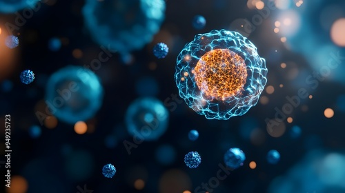 Sii Style Geometric Virus Cells with Gold Core and Blue Molecular Spheres