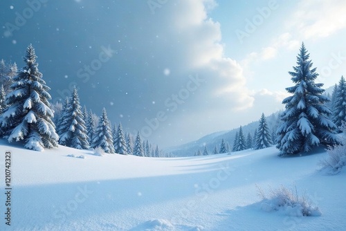 Silently falling snow covers the landscape with a layer of white, icy, quiet, calm